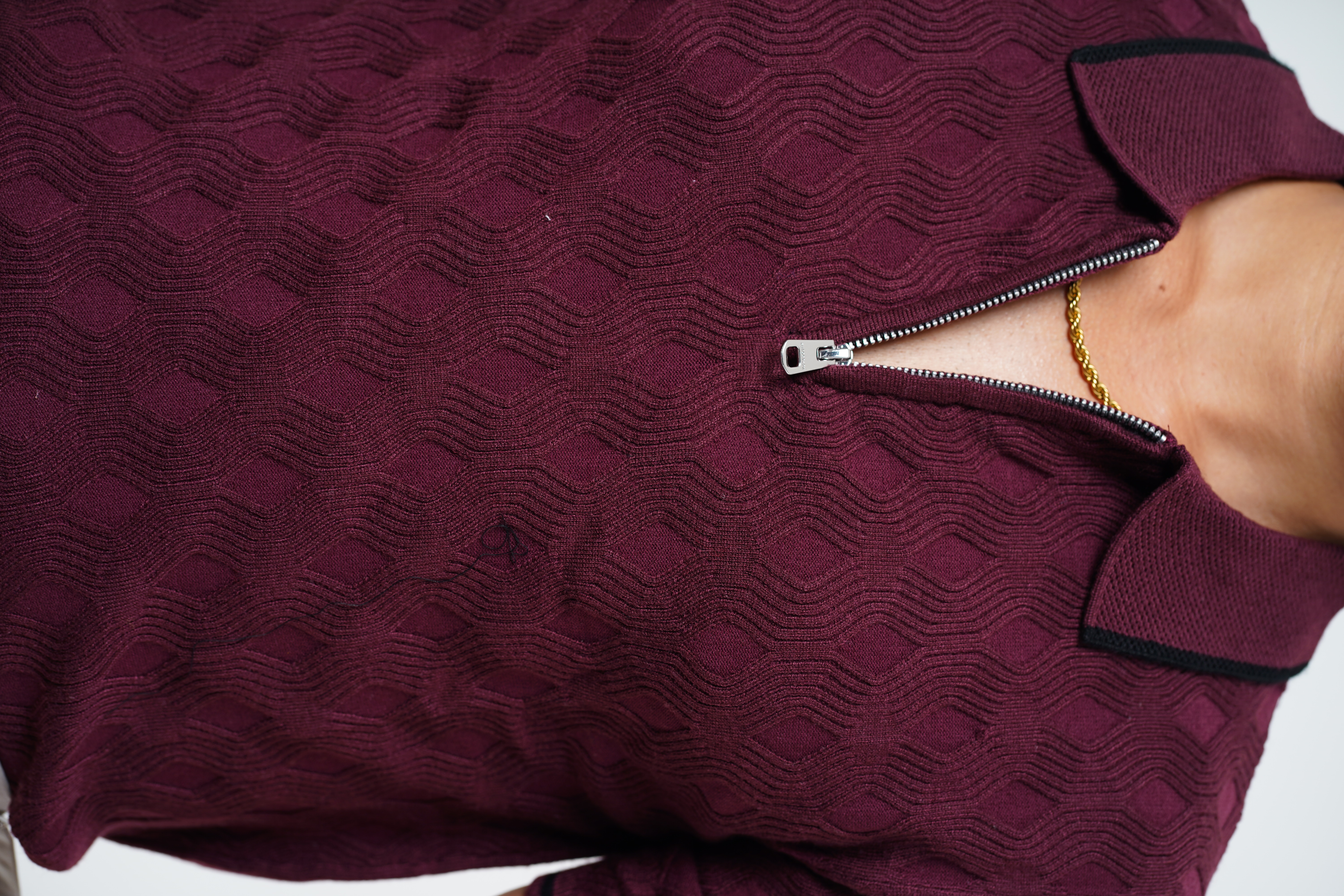Geometric wave pattern blood red knitted polo